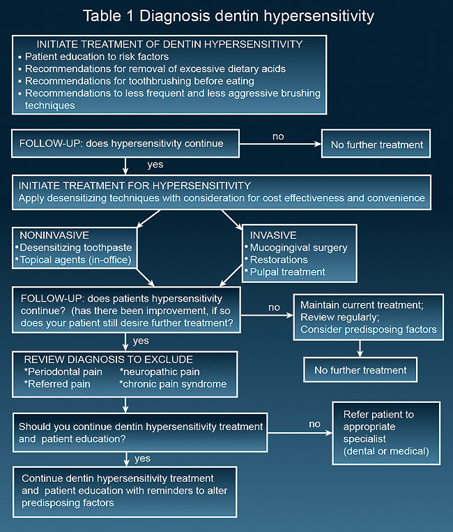 Dentin hypersensitivity treatment at home. Treatment of dentin hypersensitivity. These may promote the loss of enamel. Patient may try to treat mild hypersensitivity at home.