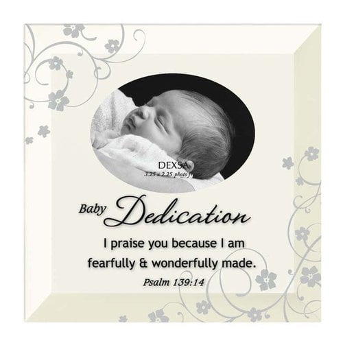 Dexsa Baby Dedication Beveled Glass Picture Frame. NO TEXT in the center 5x7 opening. LASODY Enamel Baby Picture Frame-Baby Birthday Gifts-New Born Baby.