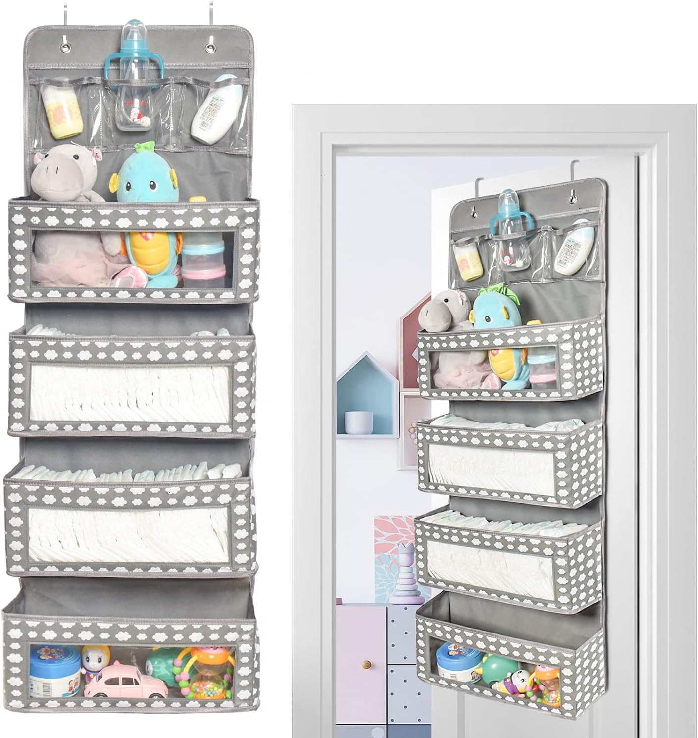 Nursery Storage Organization Over the Door Organizer. Delta Children 4 Pocket Over The Door Hanging Organizer. Shop the best Univivi 6 - Layer Fabric Over the Door Organizer Gray Foldable Door Organizers Nursery Closet Storage at Products for baby online store.