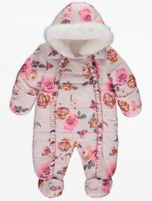 Pretty baby girls snowsuits for her warm cosy look. Baby Girls Pram Snowsuit - Just One You made by carters Ivory One Size. 45 out of 5 stars. This colour is available. Bold prints and cheerful stripes add brightness while fleece linings feel cosy against delicate skin. Floral Character Print Pramsuit 0mths-2yrs 26 - 28. When your little one grows out of their gear pass it down to the next generation of explorers. Baby snowsuits built to last. Ankle-to-chin zippers a roomy hood foldover cuffs and a water-resistant shell.