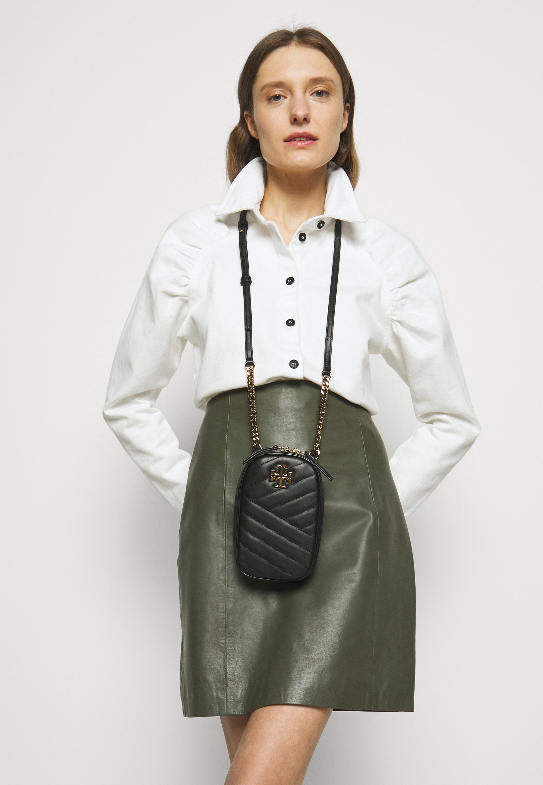 Made of soft chevron quilted leather Fits all phone sizes up to an iPhone 11 Pro and Samsung Galaxy Note 10 Lambskin Zipper closure Adjustable leather strap with 225 565 cm drop 1 exterior slit pocket. Chevron-quilting on the softest leather with a beveled logo in brushed gold. Shop Tory Burch Kira Chevron Phone Crossbody Iphone X In Black from 400 stores starting at 149.