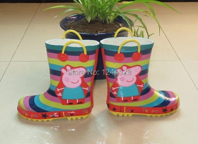 Sizing suitable for 18 months to 8 years old size 5-2. And of course when you love Peppa Pig you HAVE to have rain boots to jump in muddy puddles. Pull-on styling with convenient top loop handles.